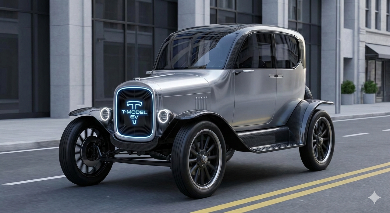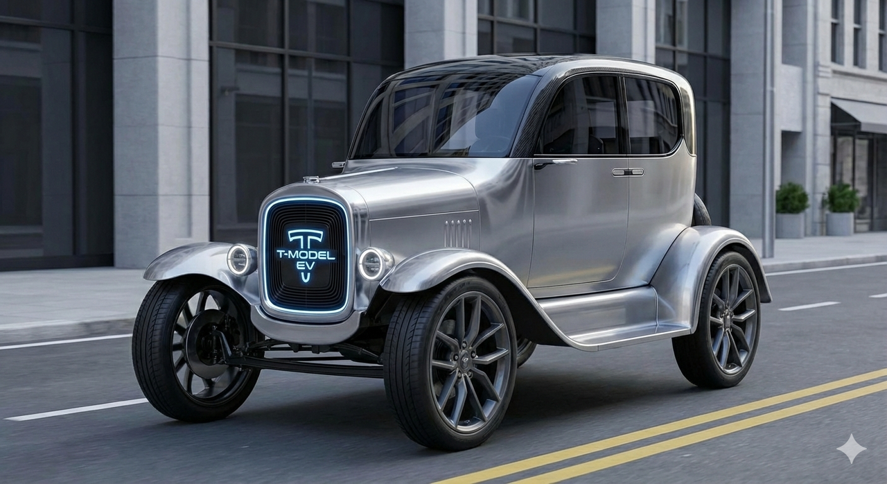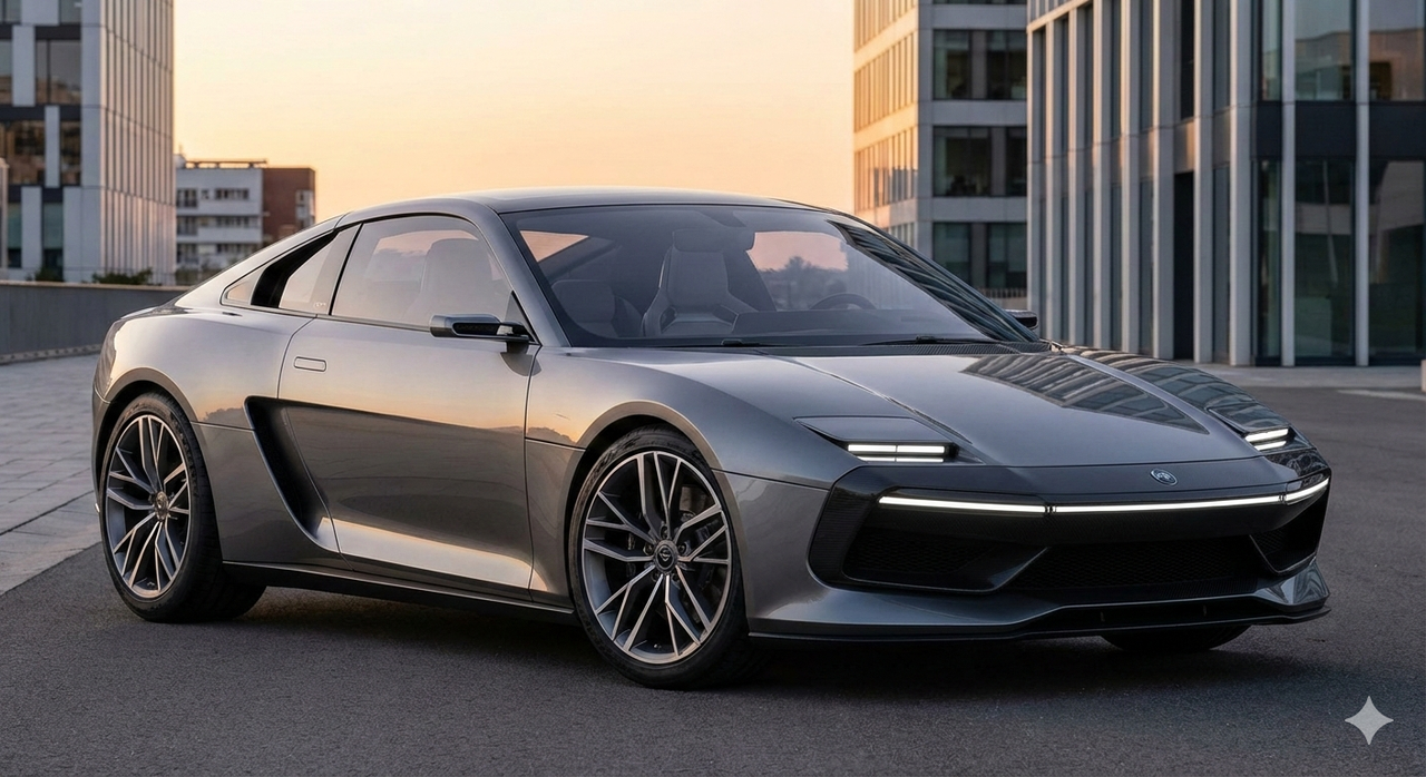 Maak een AI-afbeelding van een auto die trekjes heeft van een succesvol of bekend model uit het verleden.