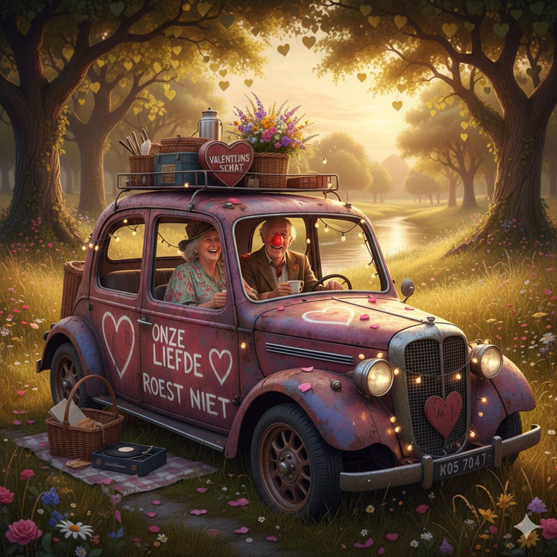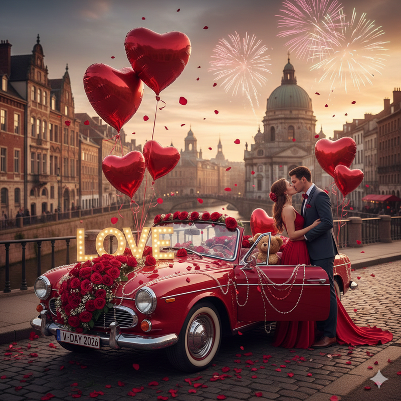Gebruik je favoriete AI-generatietool (zoals Gemini, Midjourney of DALL-E) om een exclusieve conceptauto te creëren. Of het nu een futuristische sportwagen is die de harten sneller doet kloppen, een luxueuze lounge op wielen voor intieme momenten, of een tijdloze klassieker met een moderne, romantische ziel – de keuze is aan jou, zolang het de geest van Valentijn ademt.- Valentijnselementen: De auto moet onmiskenbaar geïnspireerd zijn op Valentijnsdag. Integreer herkenbare elementen zoals hartvormige accenten, roos-details, een specifiek kleurenpalet van diep rood, zacht roze, of stralend goud, en/of een weelderig interieur van fluweel en zijde.