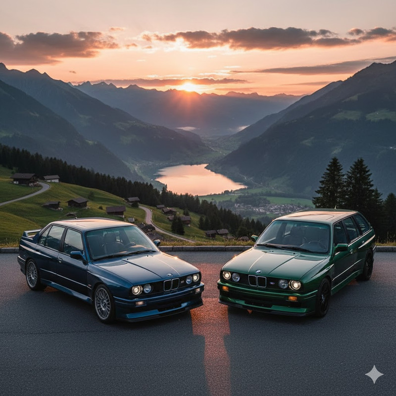 Gebruik je favoriete AI-generatietool (bijvoorbeeld Midjourney, DALL-E of vergelijkbaar) om twee auto’s te creëren: