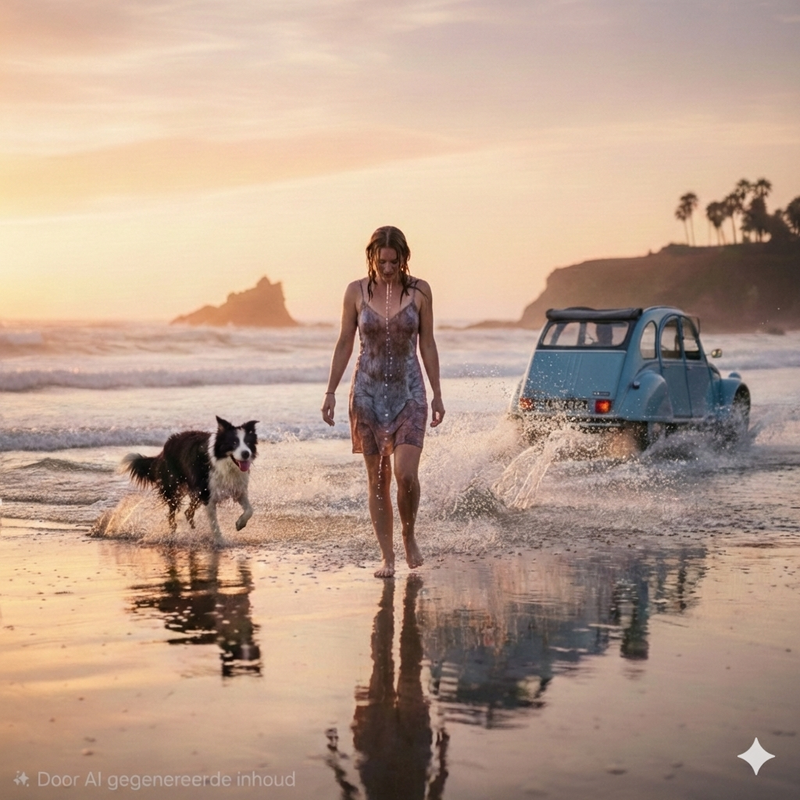 Ik heb alle foto's goed bekeken, maar ik zag je vrouw op geen van de foto's. Zij is jouw fotograaf? Ze was niet blij dat je haar compleet nat spetterende bij het langsrijden.De ideale roadtrip voor mij is met een 2cv heel Frankrijk doorkruisen. Geen blonde deerne, maar wel Charlie (en mijn vrouw) om me gezelschap te houden.