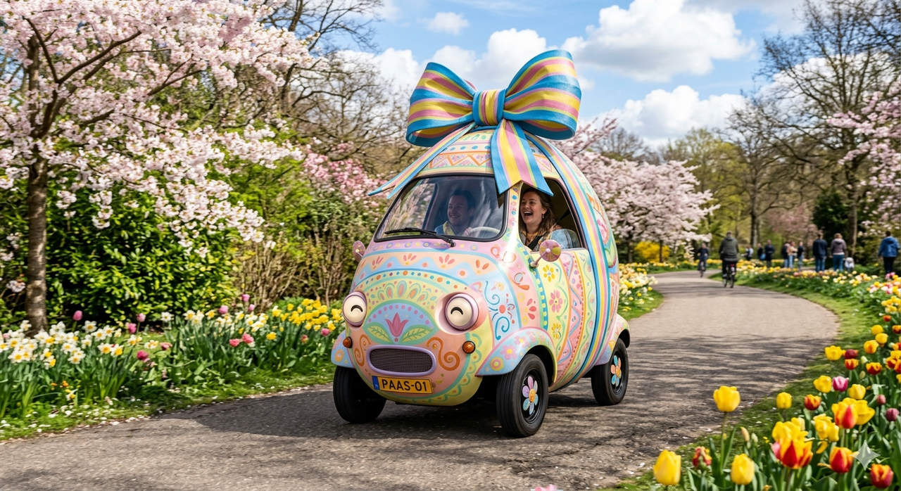 Die is heel simpel, of juist zo moeilijk als je het jezelf kunt maken: we gaan de auto in beeld brengen met Pasen en wat daar zoal bij hoort als thema. Zolang uit je creatie de paassfeer maar duidelijk naar voren komt. Laat je fantasie lekker de vrije loop en ik zeg altijd maar hoe gekker hoe beter, maar hoe ver je daarin gaat moet je zelf maar bepalen.