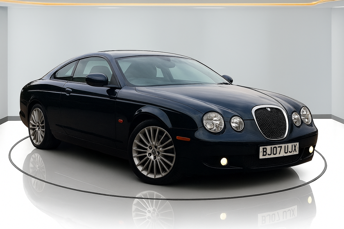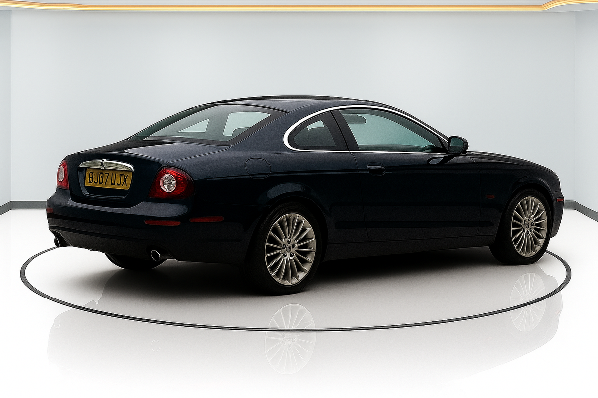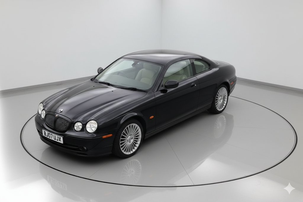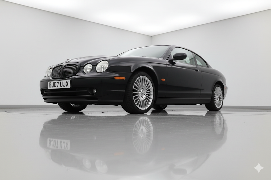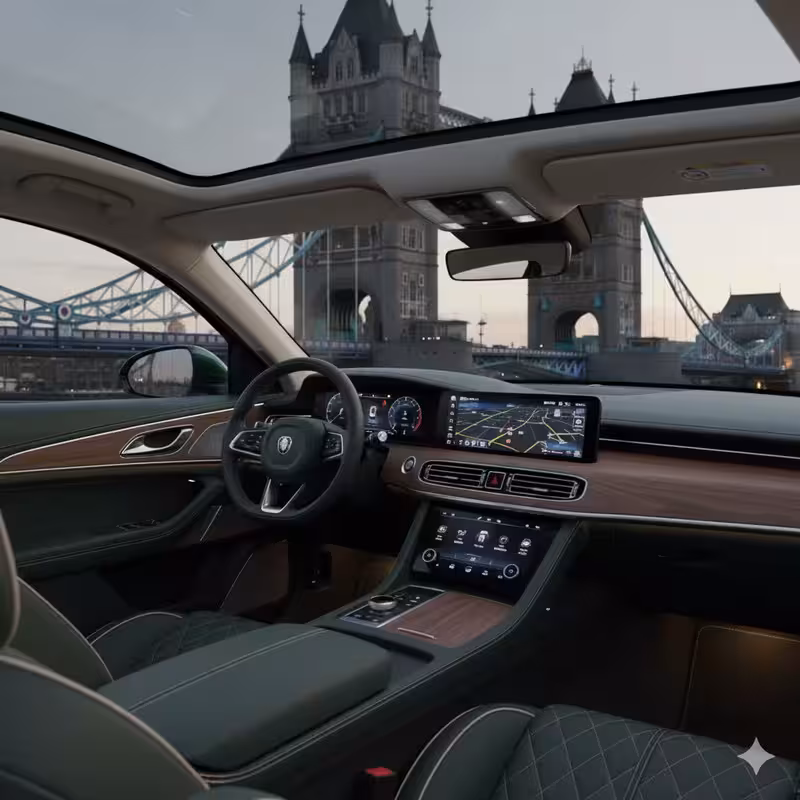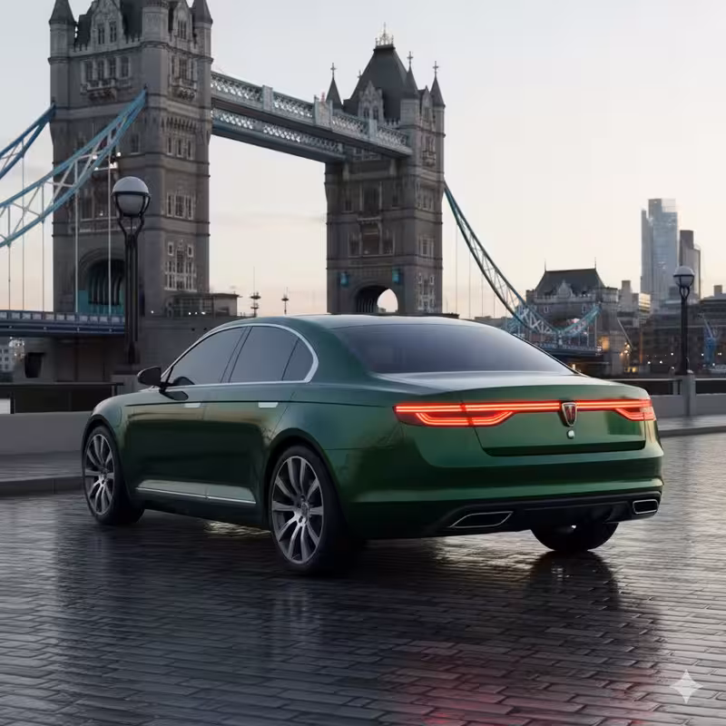 Als je de belangrijkste elementen van de auto in de link beschrijft, kan ik proberen om een nieuwe afbeelding te creëren die daar zo goed mogelijk op lijkt.