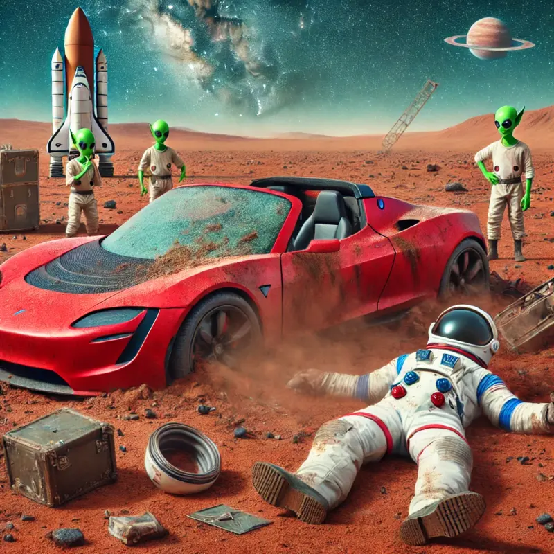 Een felrode auto, een dummy in ruimtepak en een deuntje van David Bowie: zo vertrok een Tesla Roadster in 2018 met een ‘Starman’ aan boord richting de ruimte. Dat gegeven dient nu als inspiratiebron voor de tweede opdracht in de AI fotowedsstrijd.