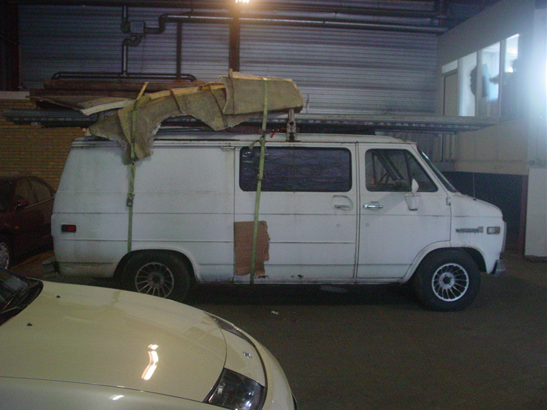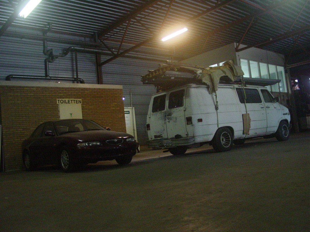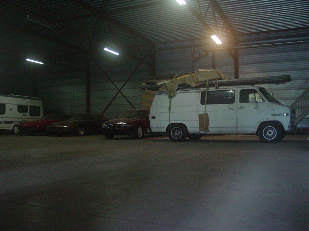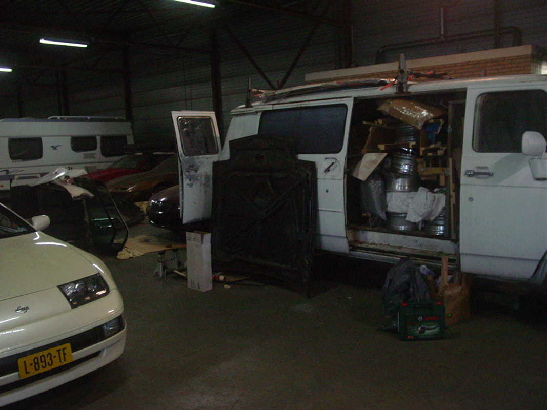 De auto's in de stalling staan klaar, de bus is vol geladen, start weer met een beetje hulp van een spuitbus inspuiten bij de carburateur, dus hij is klaar voor een 2500 km reis.