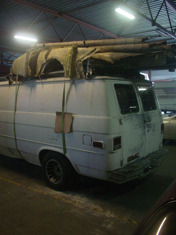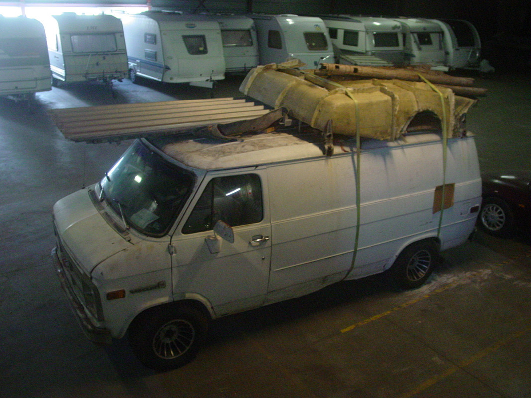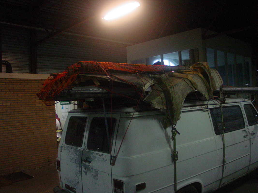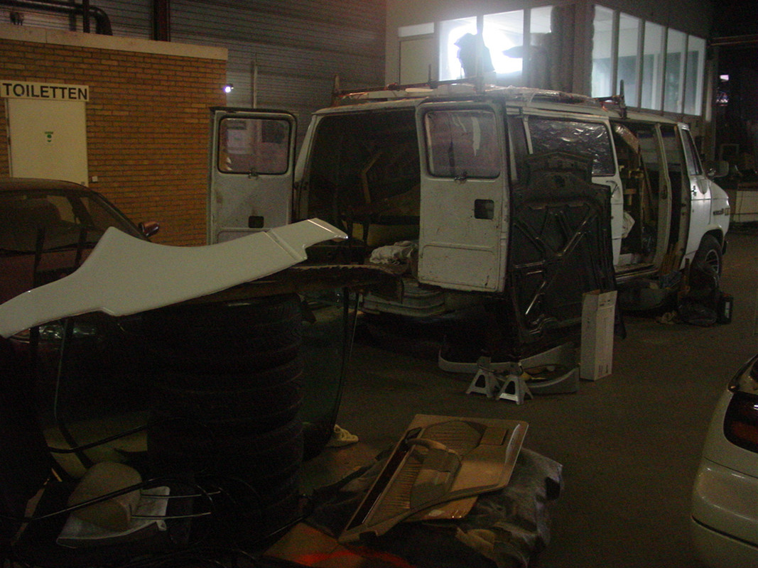 De auto's in de stalling staan klaar, de bus is vol geladen, start weer met een beetje hulp van een spuitbus inspuiten bij de carburateur, dus hij is klaar voor een 2500 km reis.
