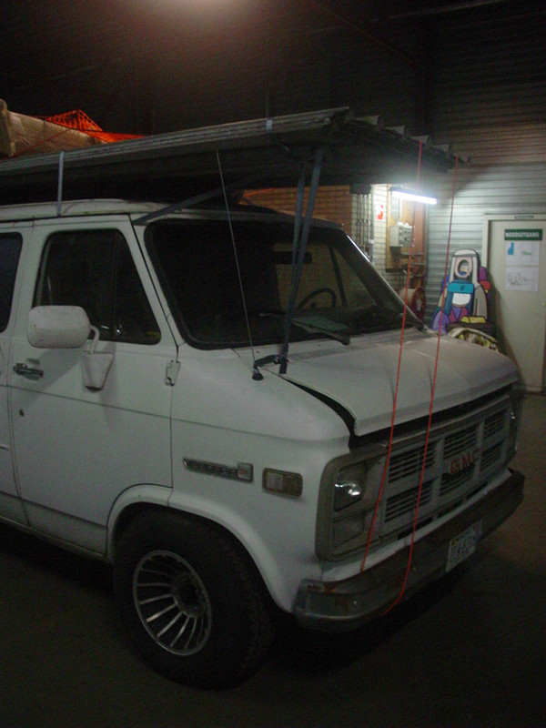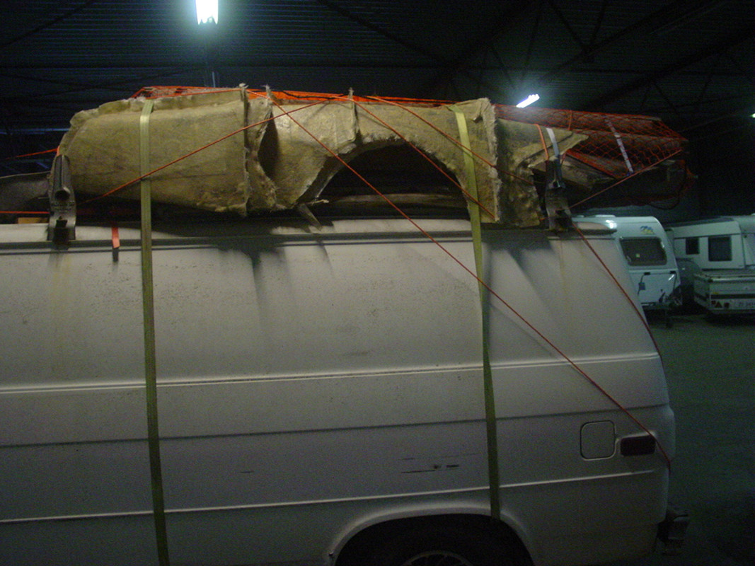 Alle zooi die er bovenop ligt en mee moet ligt vastgesnoerd, dus dat waait er niet meer af.