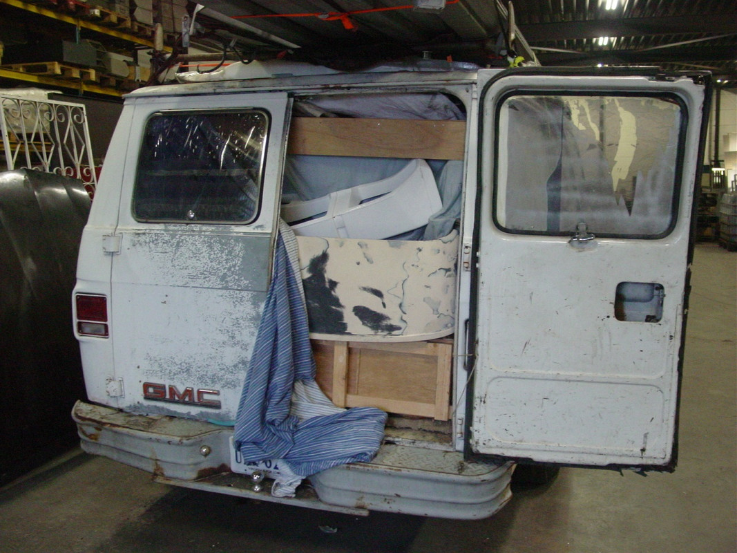 Het transportbedrijf die de bus komt ophalen heeft een gewone vrachtwagen waar hij in gaat, ze hebben een loading dock nodig om de bus erin te zetten.