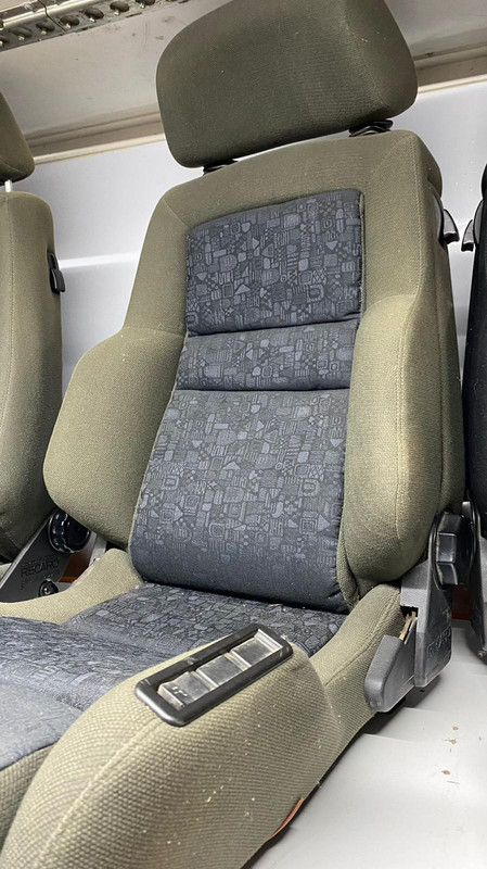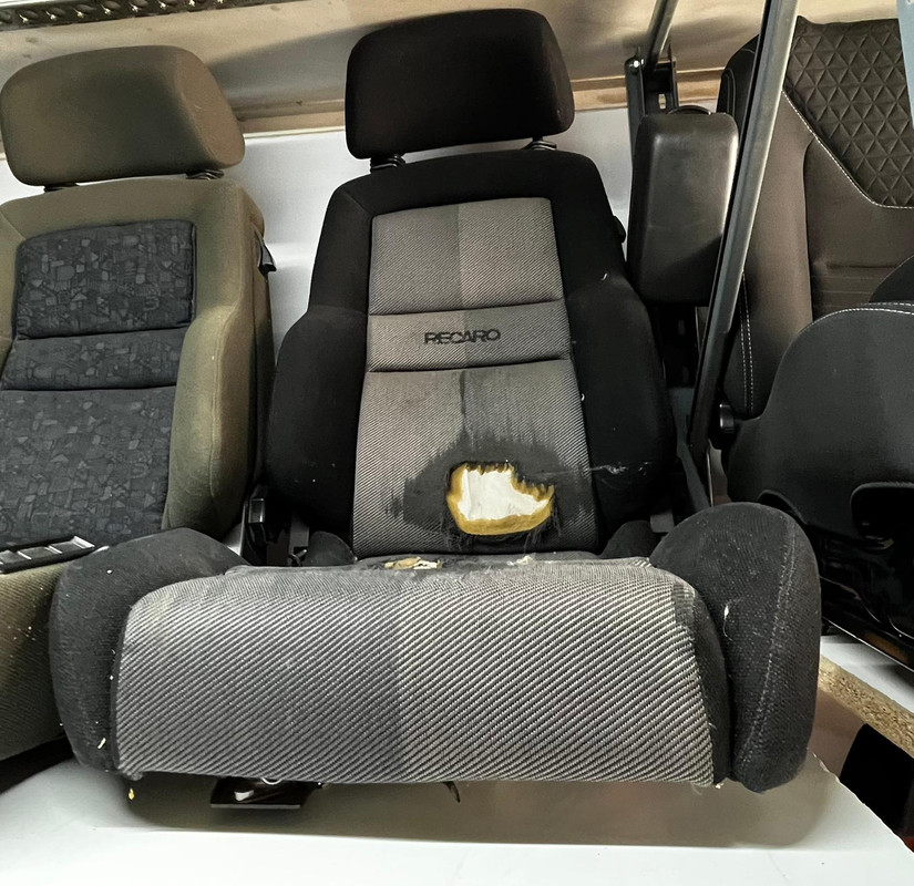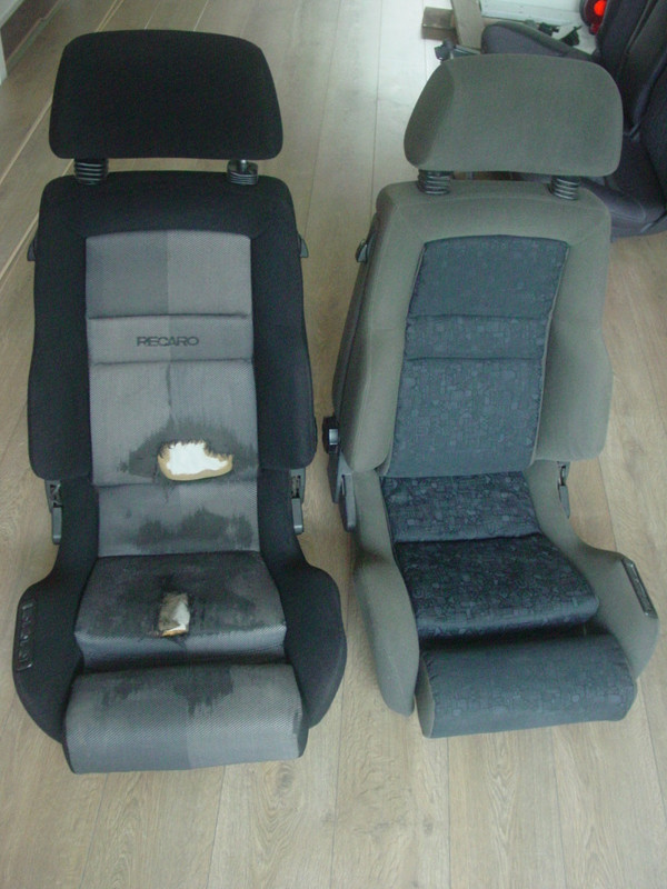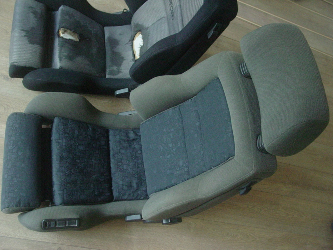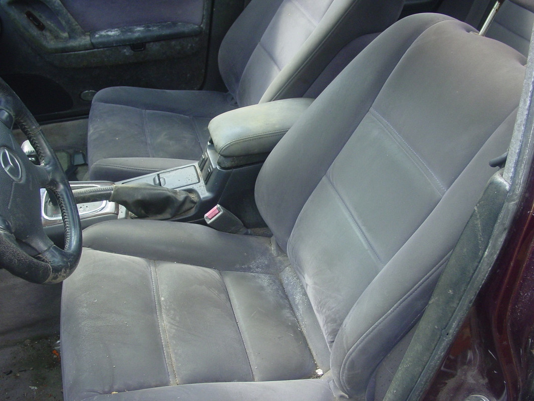 De '94 Mercedes Combi, bestuurdersstoel heeft een genaaide lelijke plek op de zijkant, en achter twee draaiknoppen op het dashboard zijn twee plastic clips totaal vergaan, die moet ik even regelen zodat de knoppen weer blijven zitten en werken.