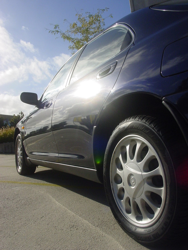 Hij had wat roest bij de achterste wielkasranden, automaat schakelde naar zijn laatste versnelling en daarna meteen eentje terug en de schokbrekers voor hadden het begevev, verder was de Xedos goed.