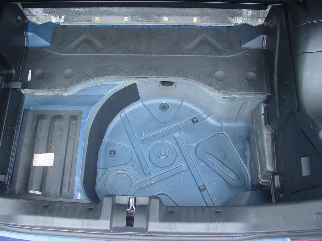 Heb alleen een bak op de plek van het reservewiel, deze heb ik eruit gehaald en al bekleding uit een sloopauto gehaald voor eentje met een reservewiel, wat ik er liever in heb en nog ga toevoegen.
