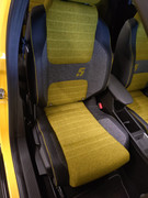 Ik wacht nog op die van mij (staat al in Nederland), maar als ik de stoel tijdens de proefrit hoger wilde zetten, dan belemmerde de binnenspiegel al snel het zicht op het andere verkeer. Die had wel iets hoger mogen hangen.Ik heb de stoel nu op normale hoogte gezet (dan kun je achterin ook met de voeten onder de stoel) en dan is het nog steeds enigszins sportief maar ook comfortabel.